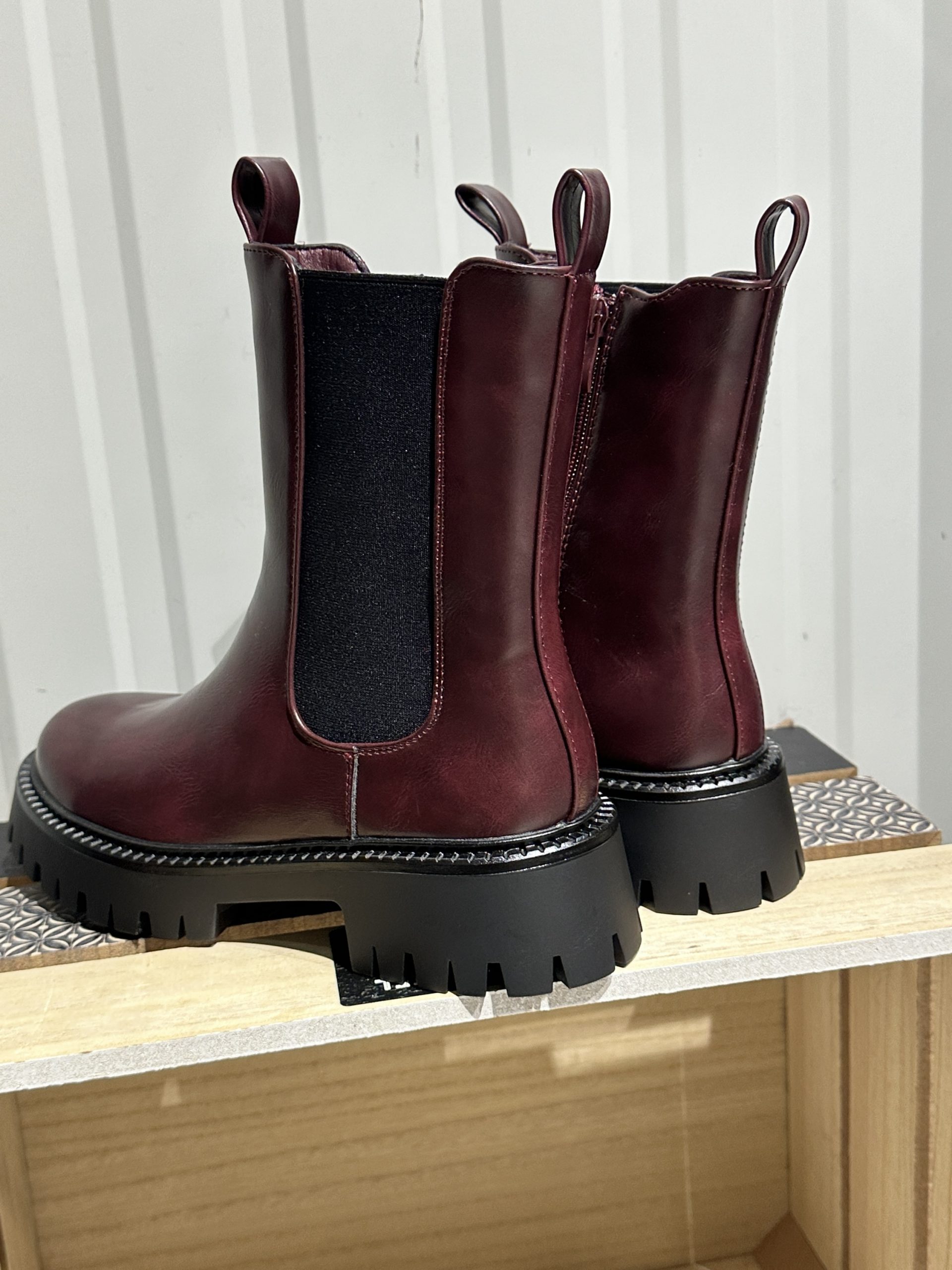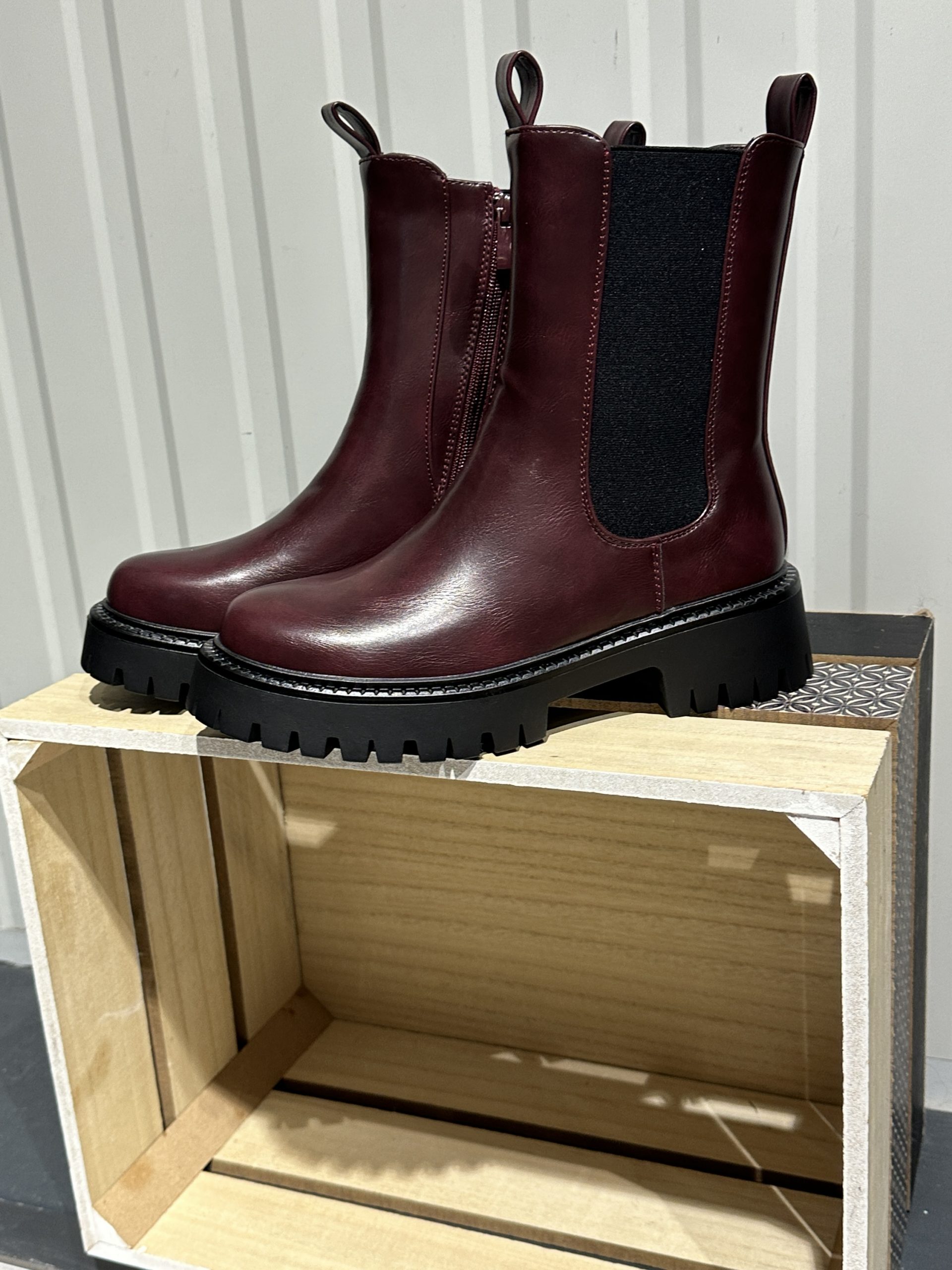 Craquez pour ces bottines à enfiler couleur bordeaux, à la fois tendance et faciles à porter. Leur design moderne est sublimé par une semelle épaisse crantée qui apporte du caractère tout en assurant un excellent confort au quotidien. Les empiècements élastiqués sur les côtés permettent un enfilage rapide et un bon maintien du pied.