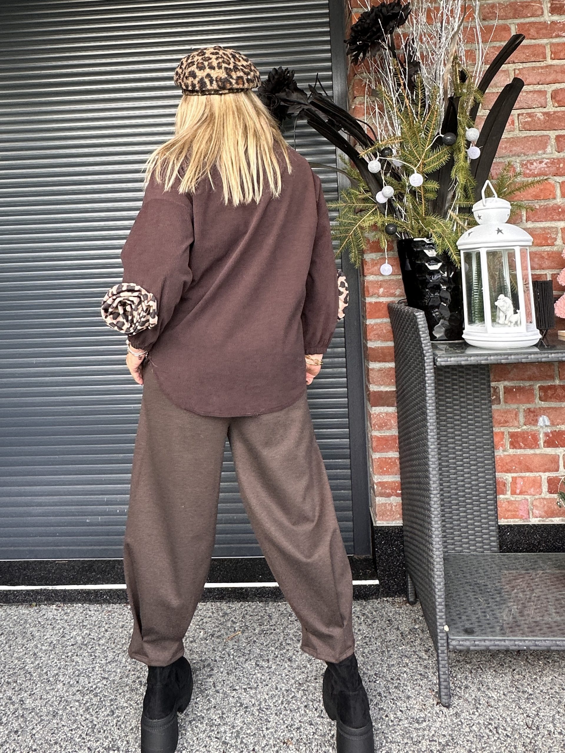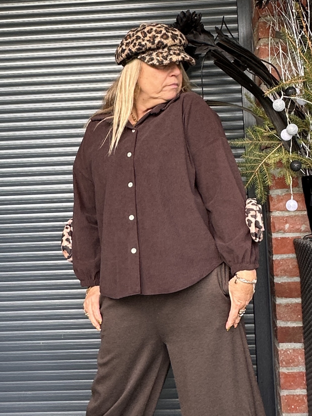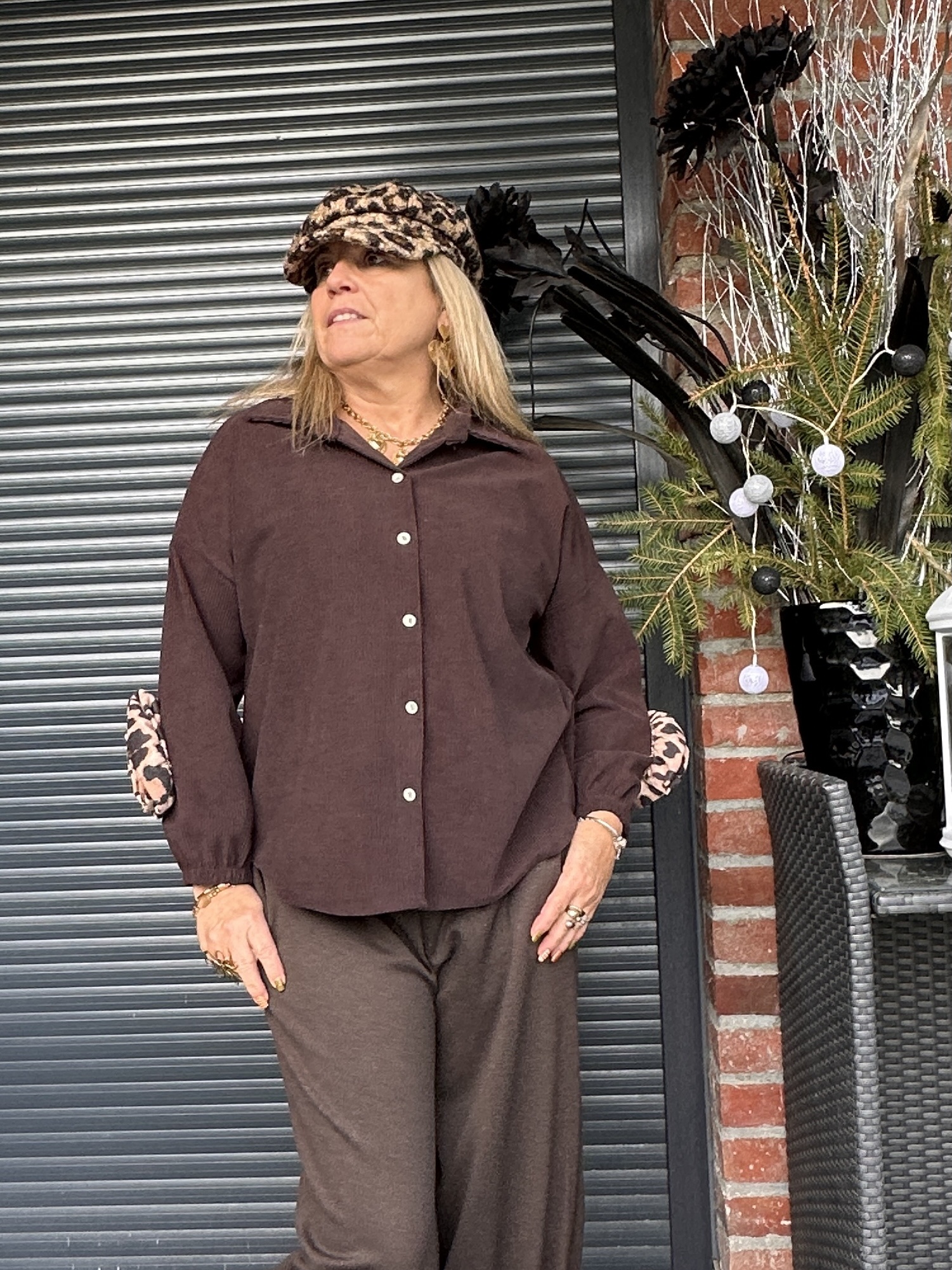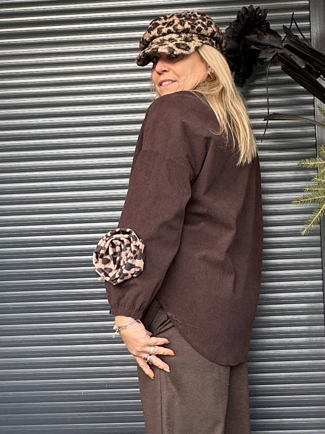 🔸 Détails : boutonnage devant, plus courte sur le devant, poignets élastiqués, détail manche en suédine motif léopard