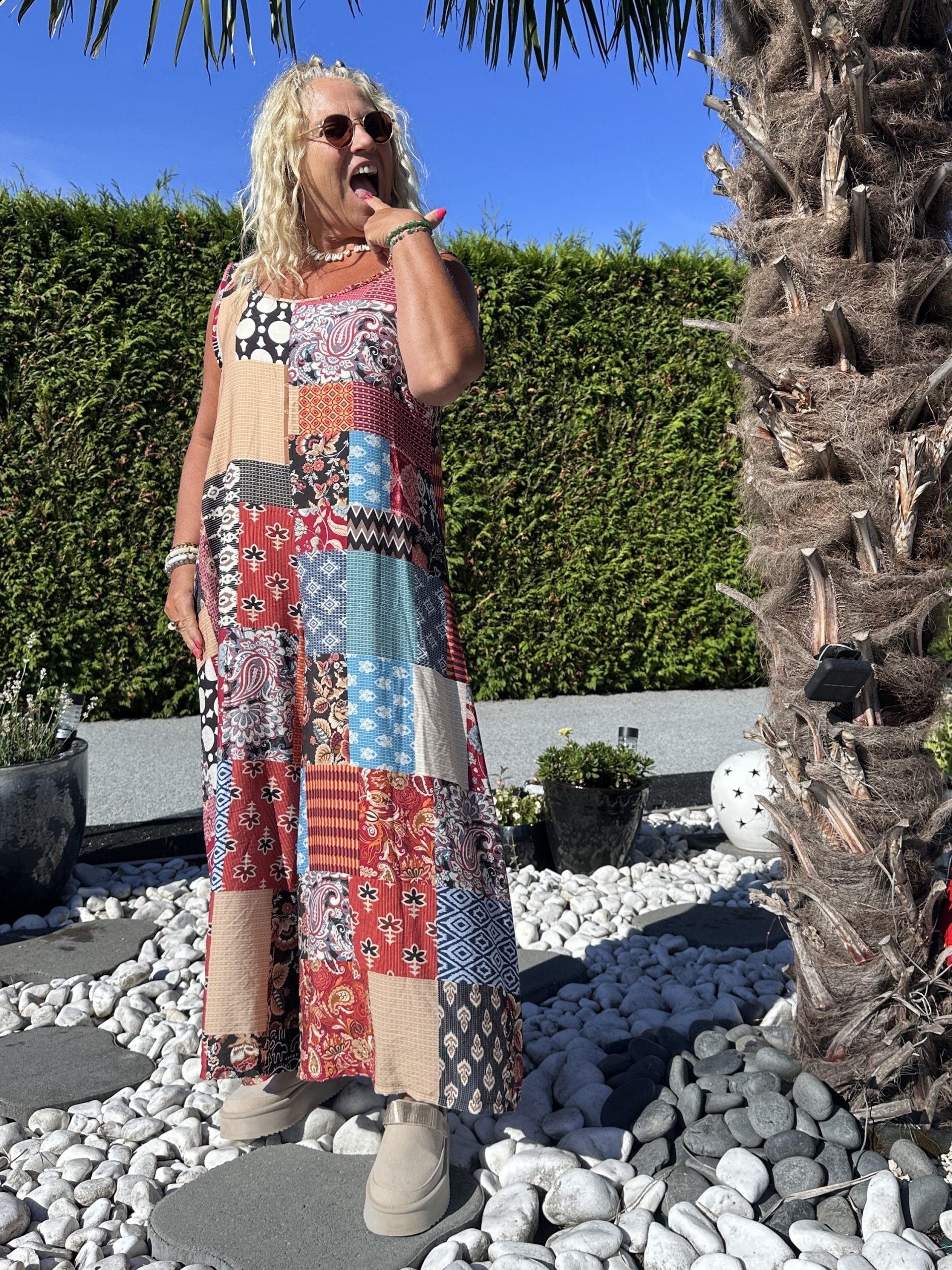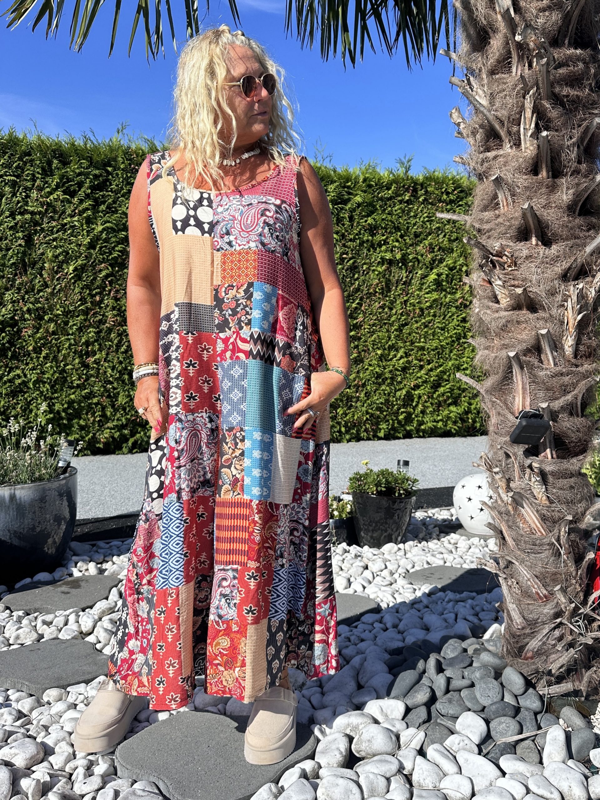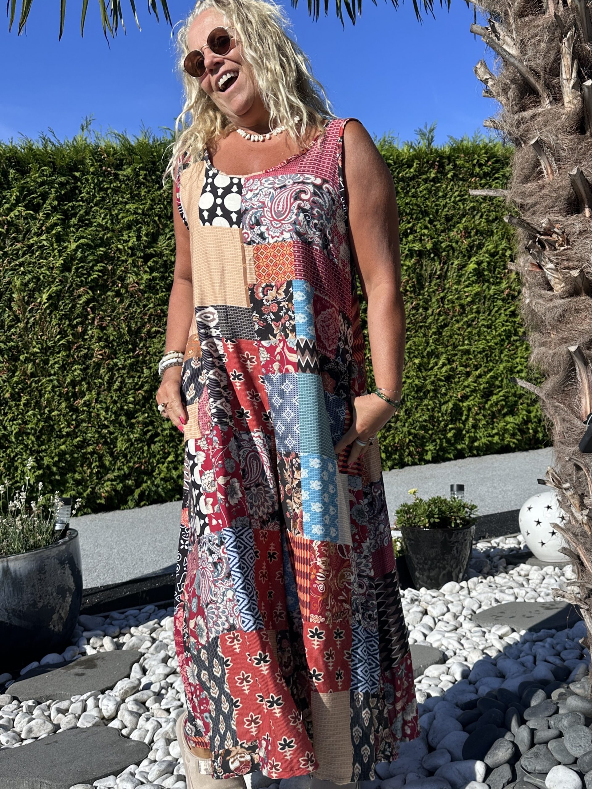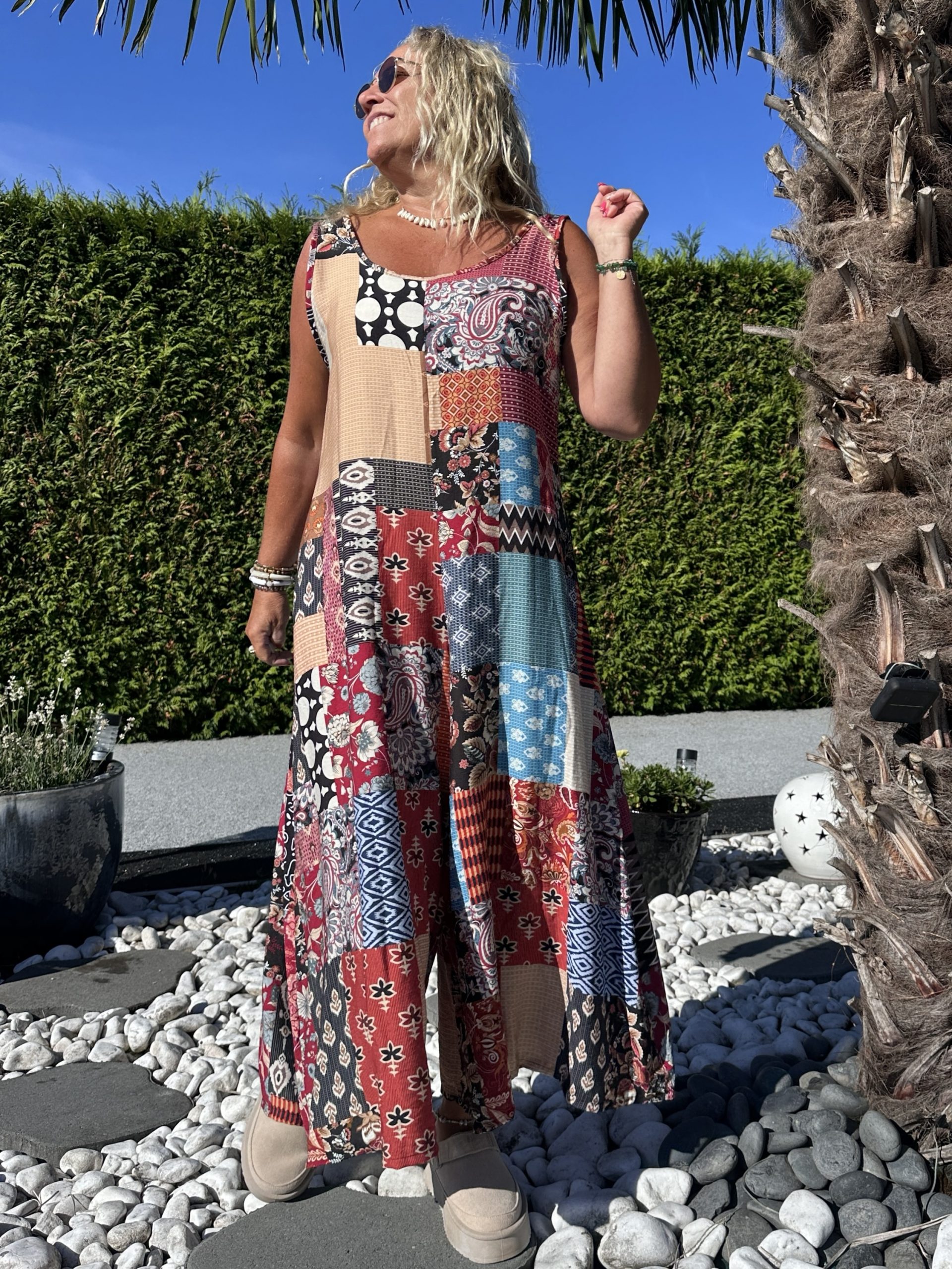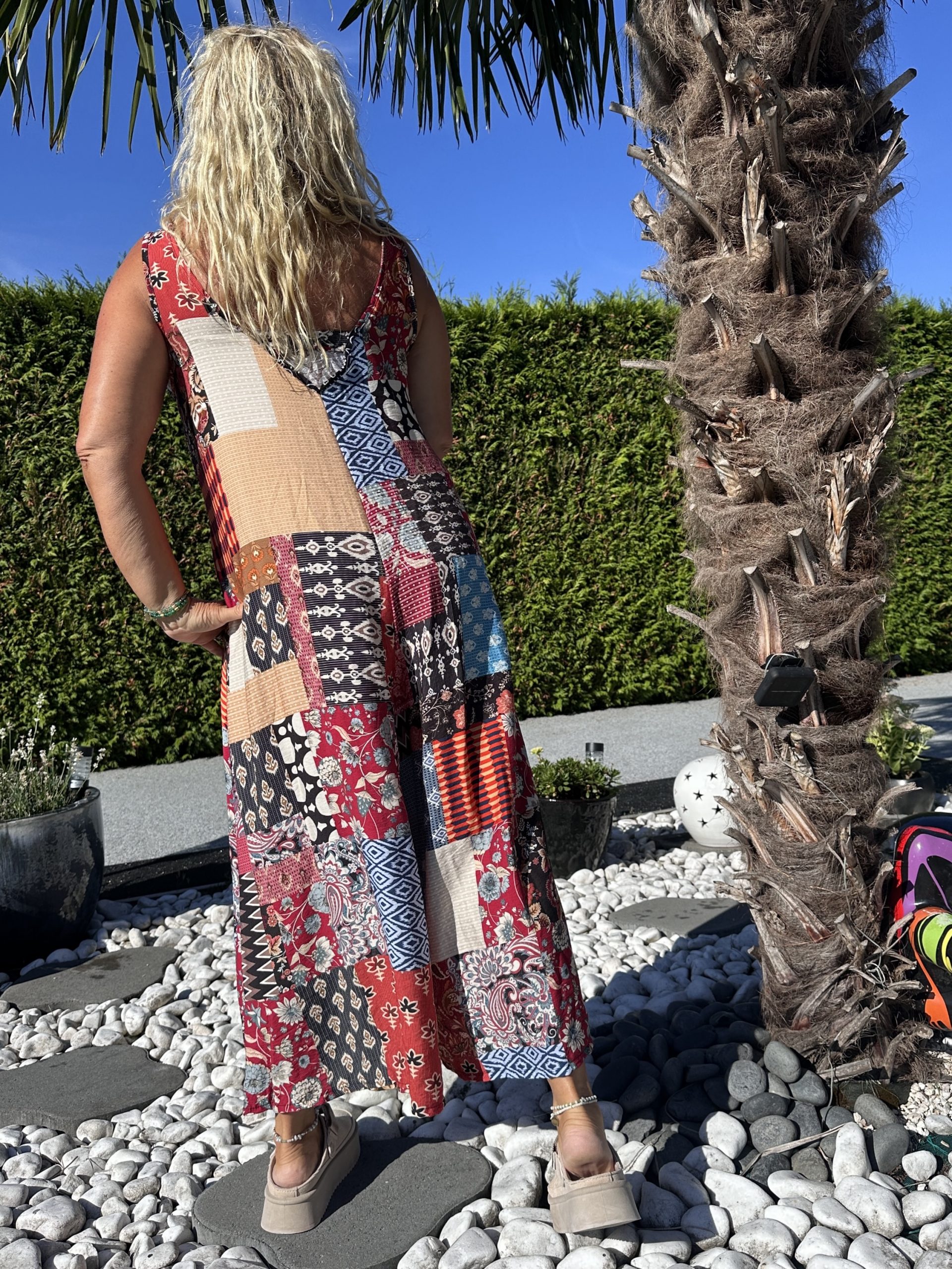 Craquez pour cette combinaison fluide effet patchwork, facile à enfiler et ultra confortable. Son style bohème et original en fait une pièce coup de cœur pour vos looks décontractés et stylés.