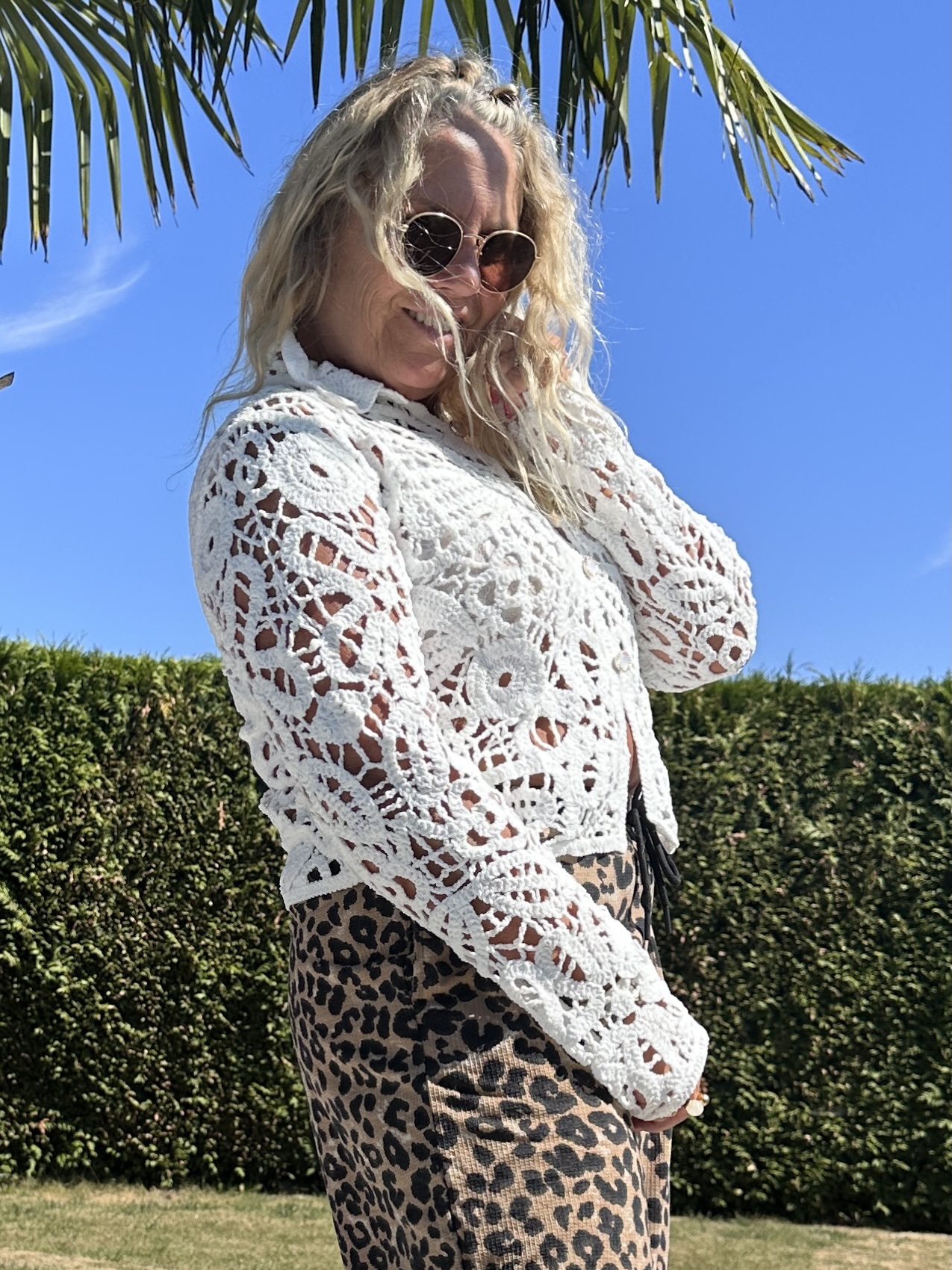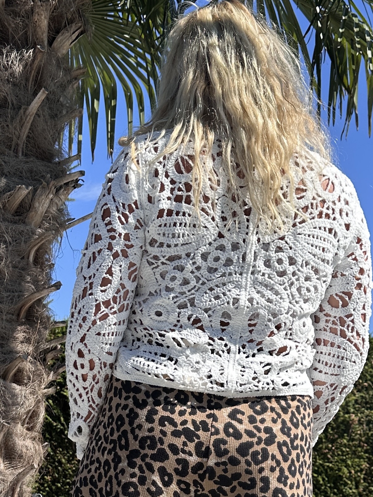 Élégante et féminine, cette veste en crochet ajouré apporte une touche bohème chic à vos tenues. Légère et facile à superposer, elle se ferme par de jolis boutons à l’avant.