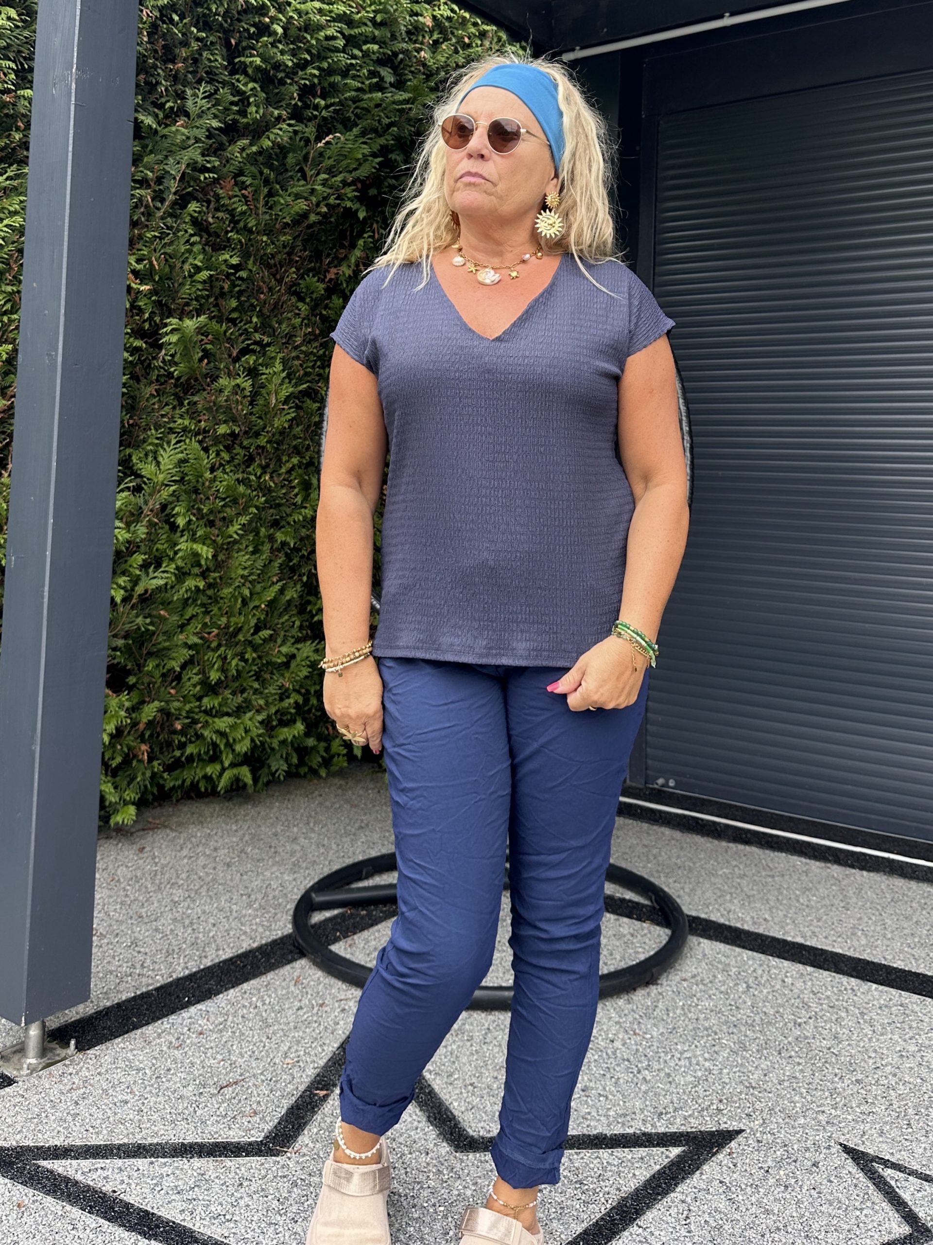 Un basique indispensable au quotidien ! Léger et agréable à porter, ce top à col V et manches courtes s’adapte facilement à toutes vos tenues. À porter seul pour un look estival ou sous une veste/gilet en demi-saison.