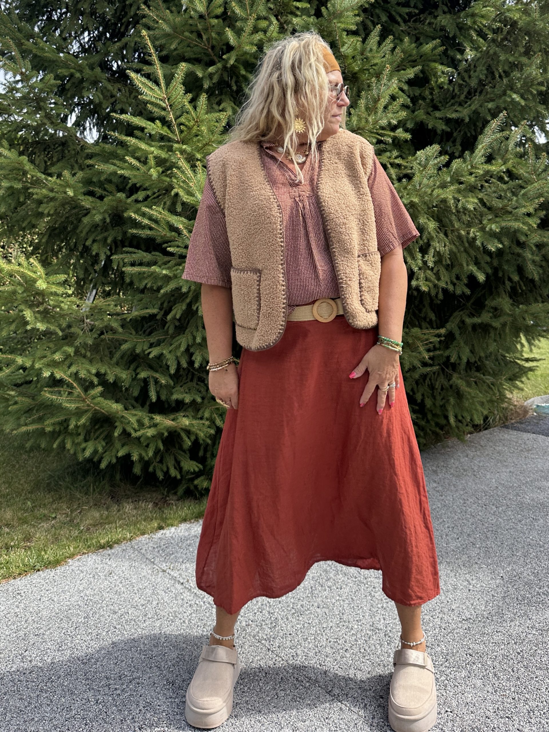 Peut se porter version cosy, mais aussi avec un collant et une paire de boots pour les arrières-saisons 🍁👢