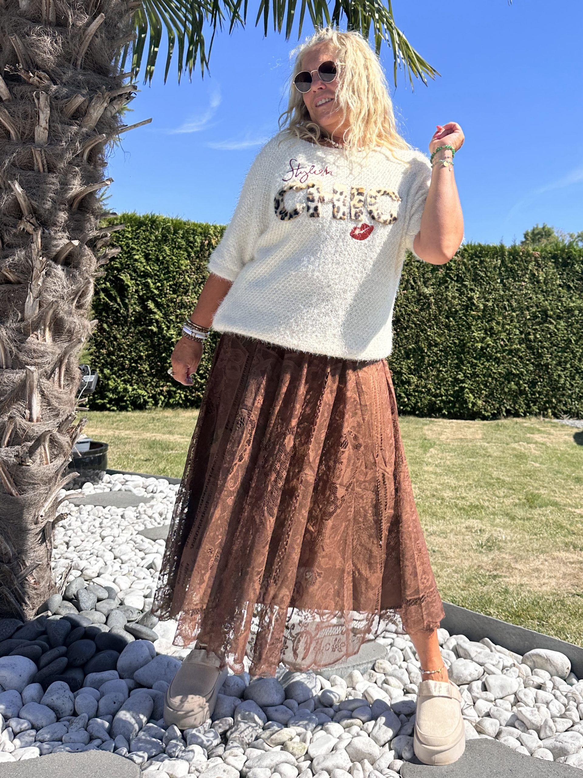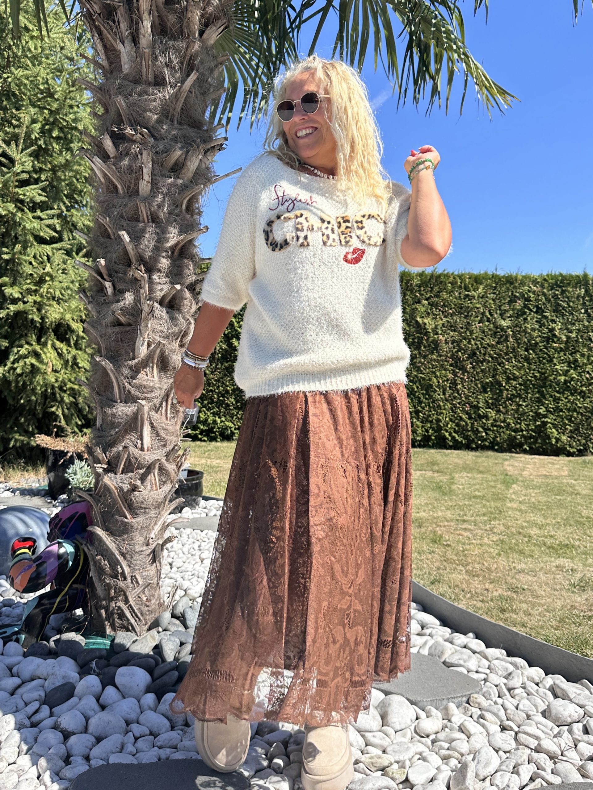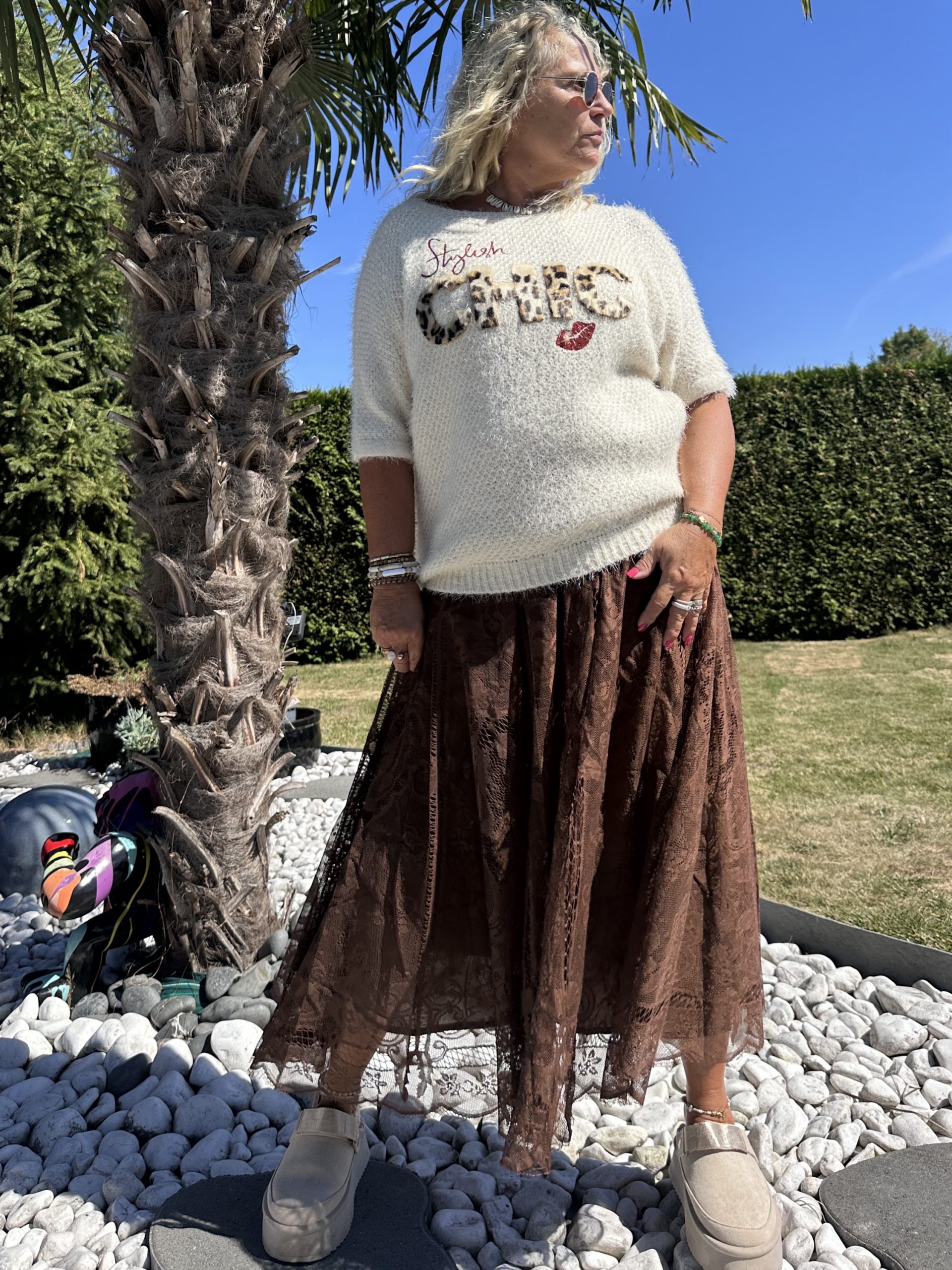 Féminine et élégante, cette jupe longue en dentelle offre un style raffiné avec sa doublure fluide. Sa taille élastique assure confort et maintien tout au long de la journée.