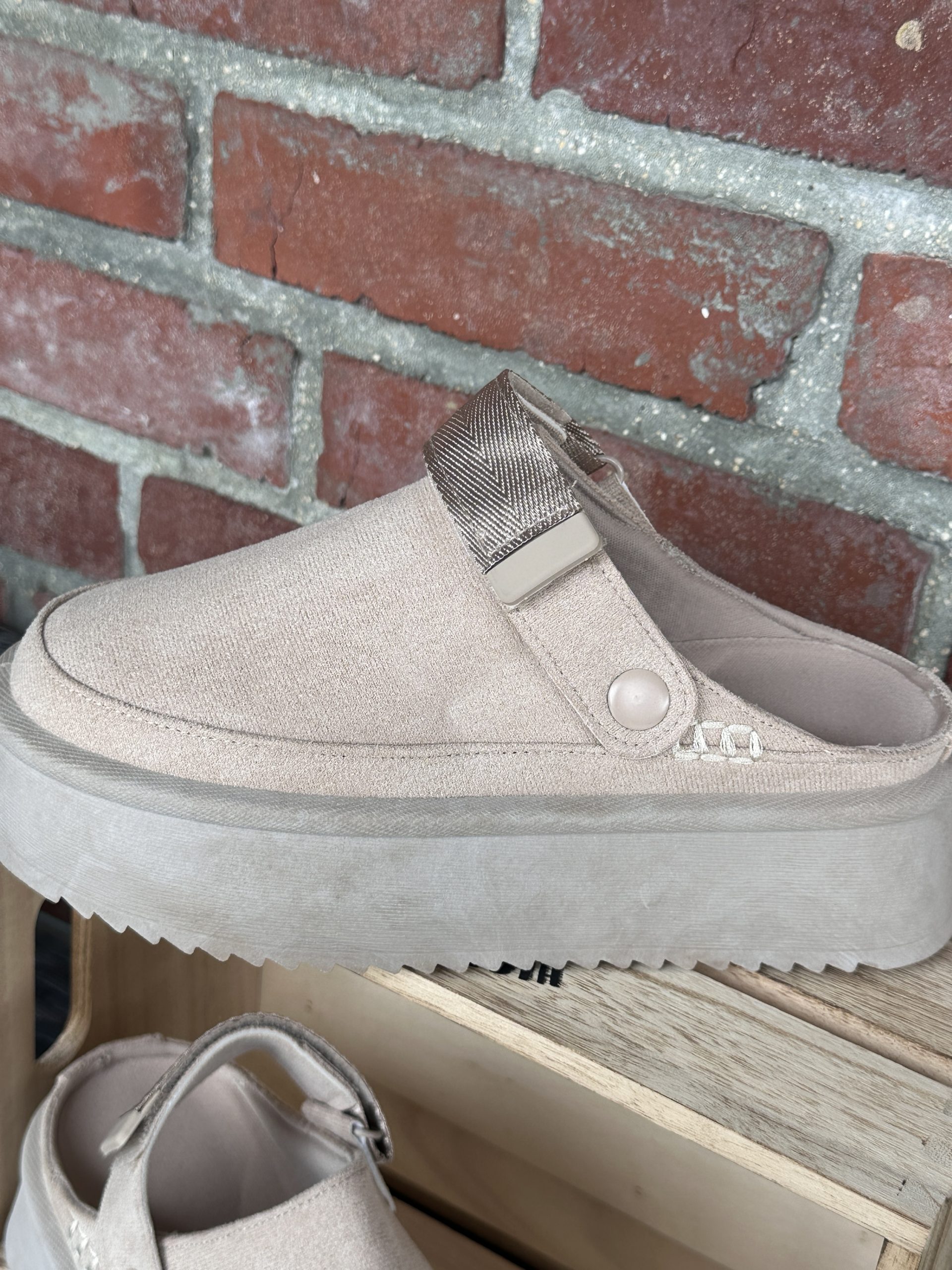 Bride réglable à l’arrière, à porter en simple mule ou attachée à la cheville