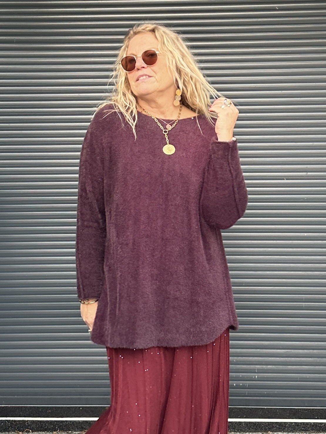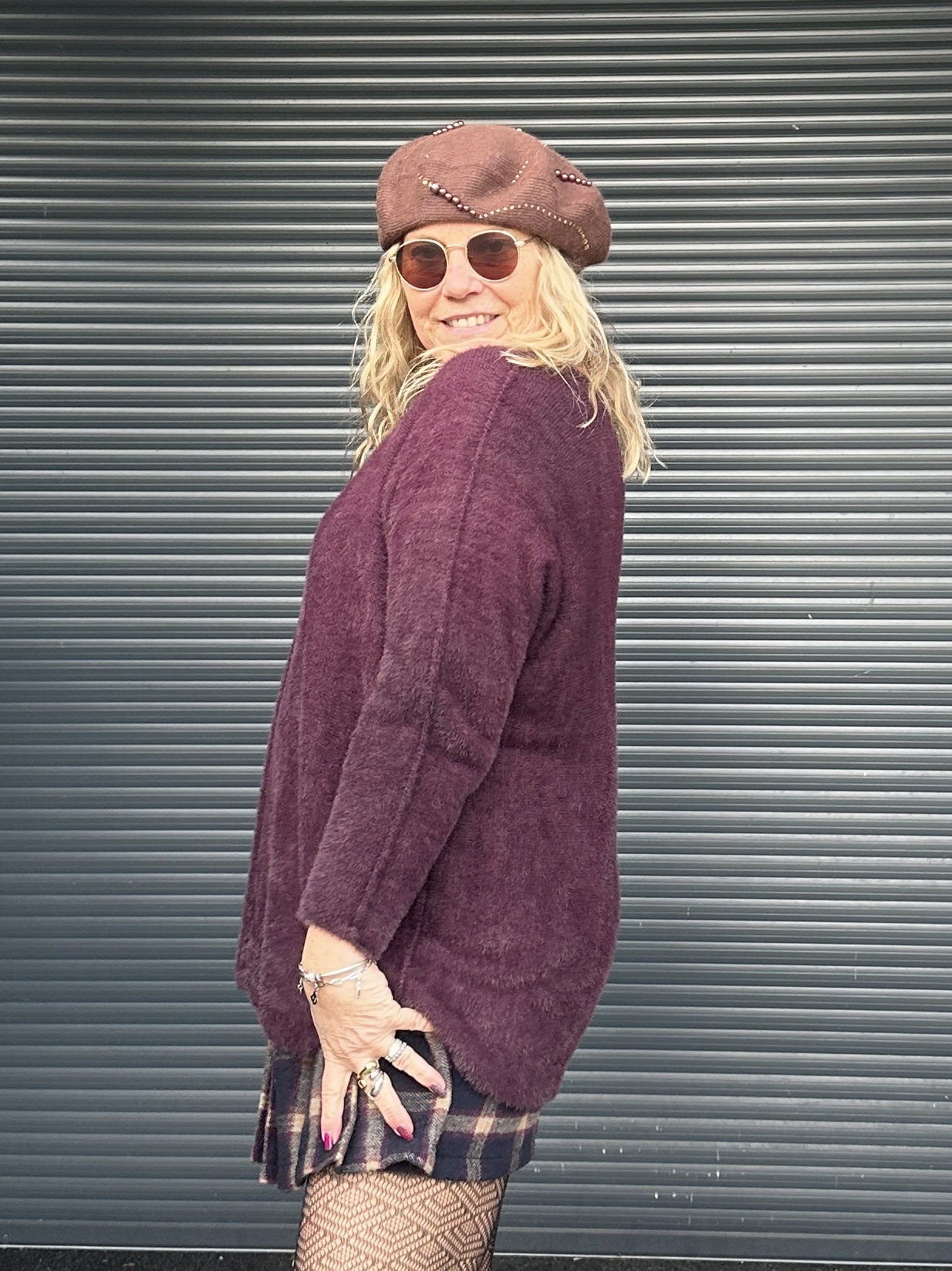 Impossible de résister à ce pull ultra doux prune et super agréable à porter, parfait pour les journées où l’on veut allier confort et style. Sa matière moelleuse procure une vraie sensation de bien-être, idéale pour un look cocooning tout en restant élégant.