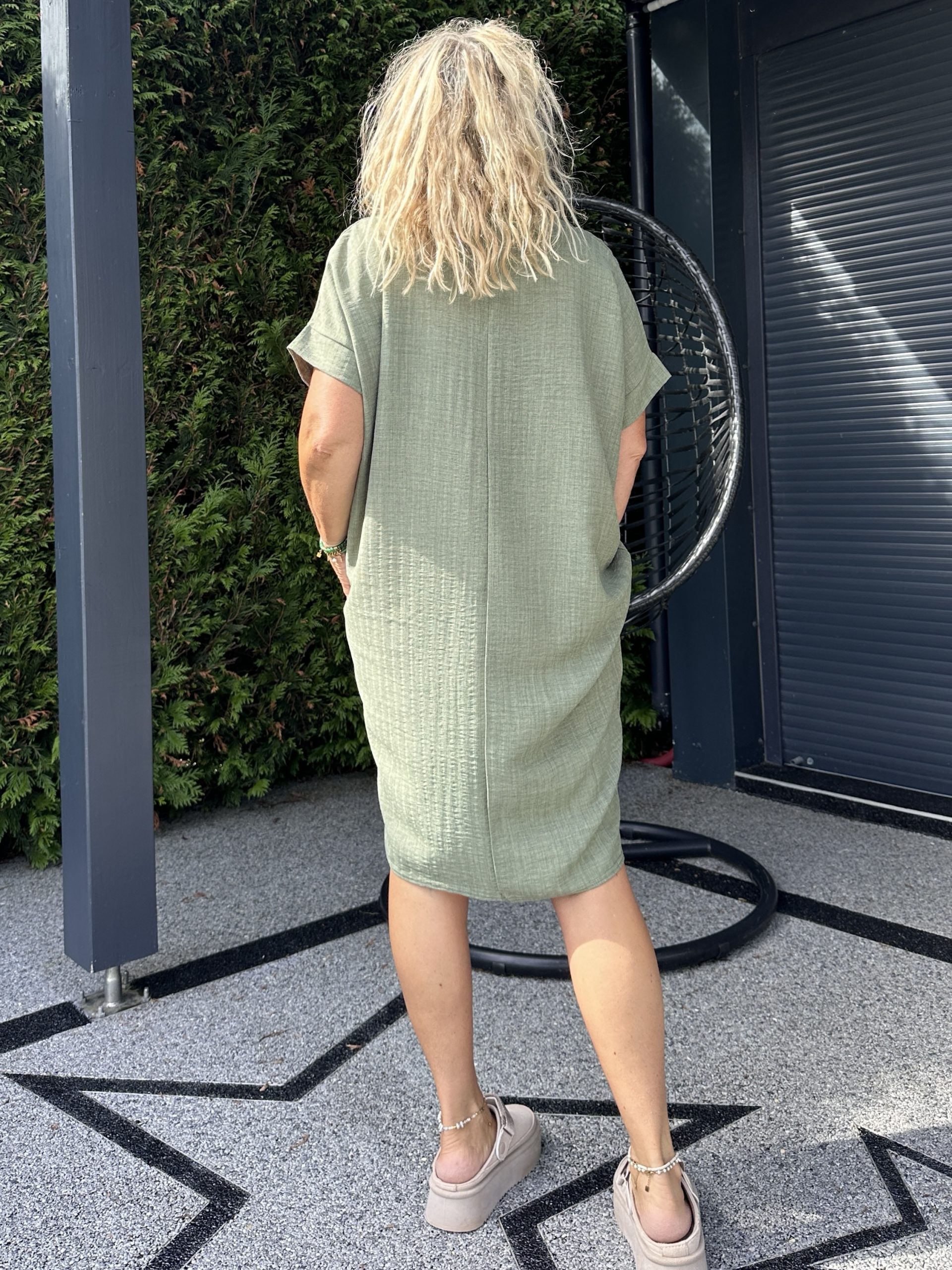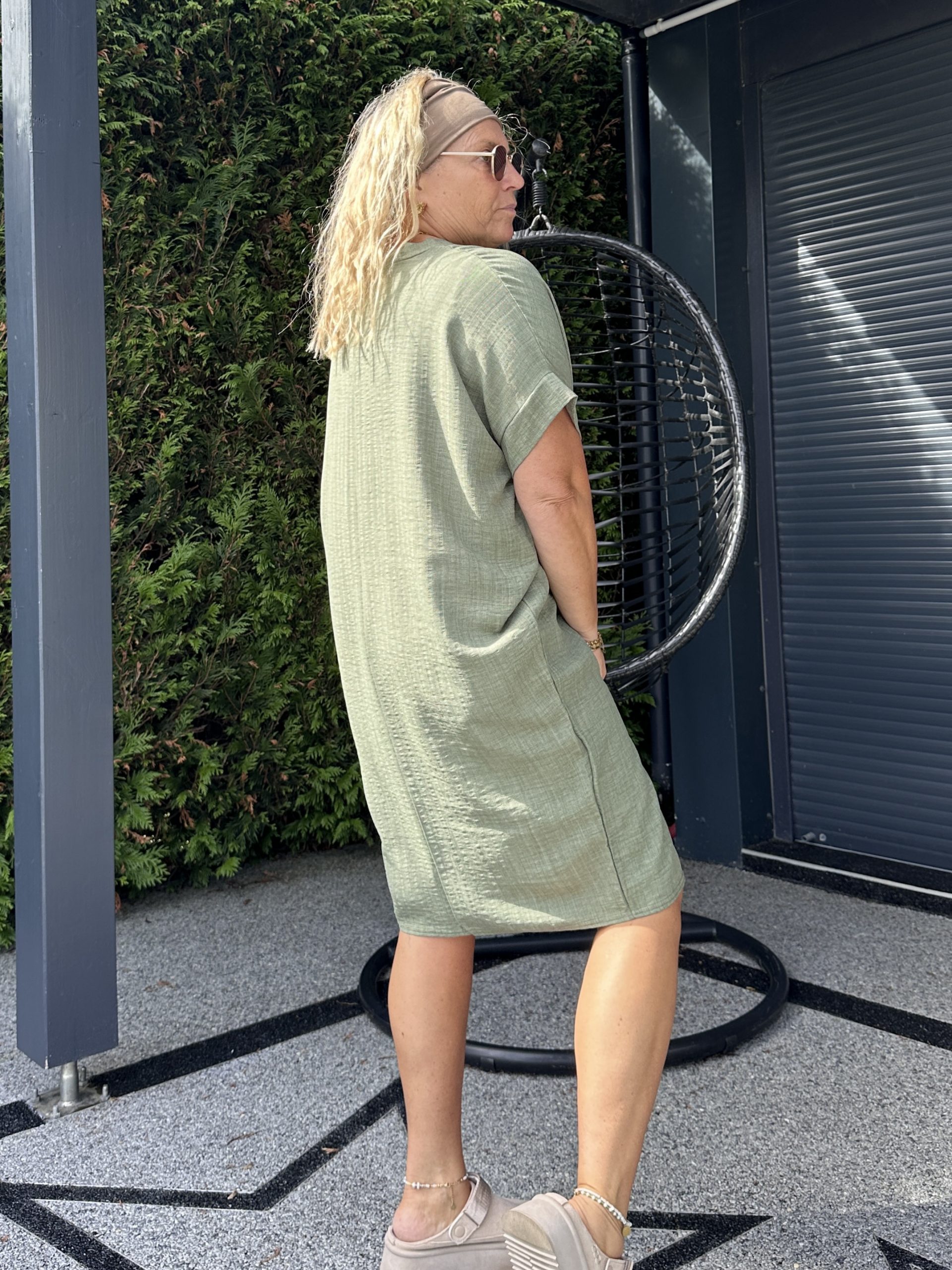 Une robe simple et élégante, parfaite à porter seule ou accessoirisée d’une ceinture ou d’une veste. Sa coupe droite met en valeur la silhouette tout en restant confortable. Elle se porte toute l’année : en été avec des baskets pour un look décontracté 🌸, et en automne avec un collant et des boots pour une allure chic et cosy 🍂. Attention cependant : la robe se resserre légèrement vers le bas, ce qui limite l’aisance au niveau des hanches.