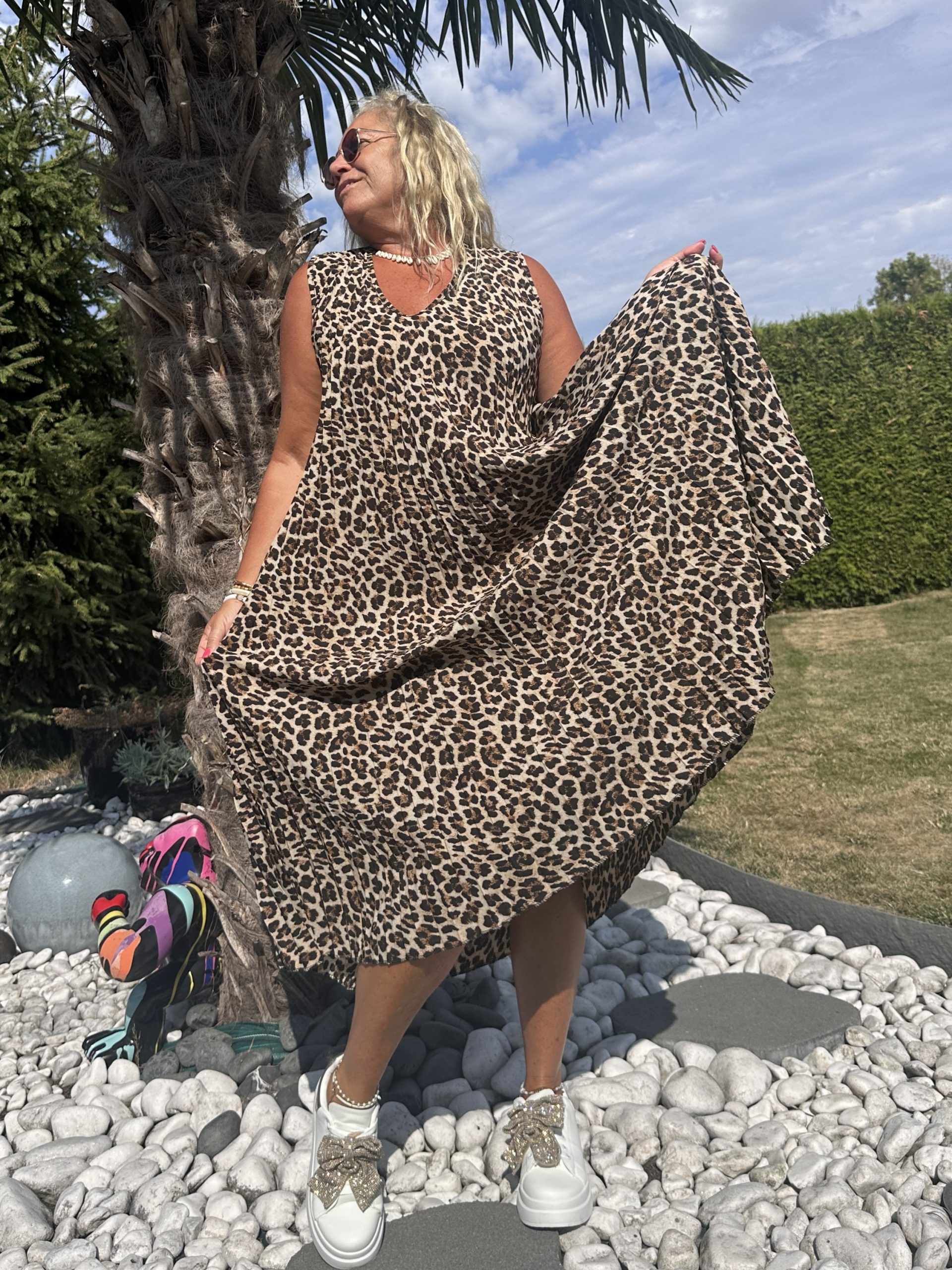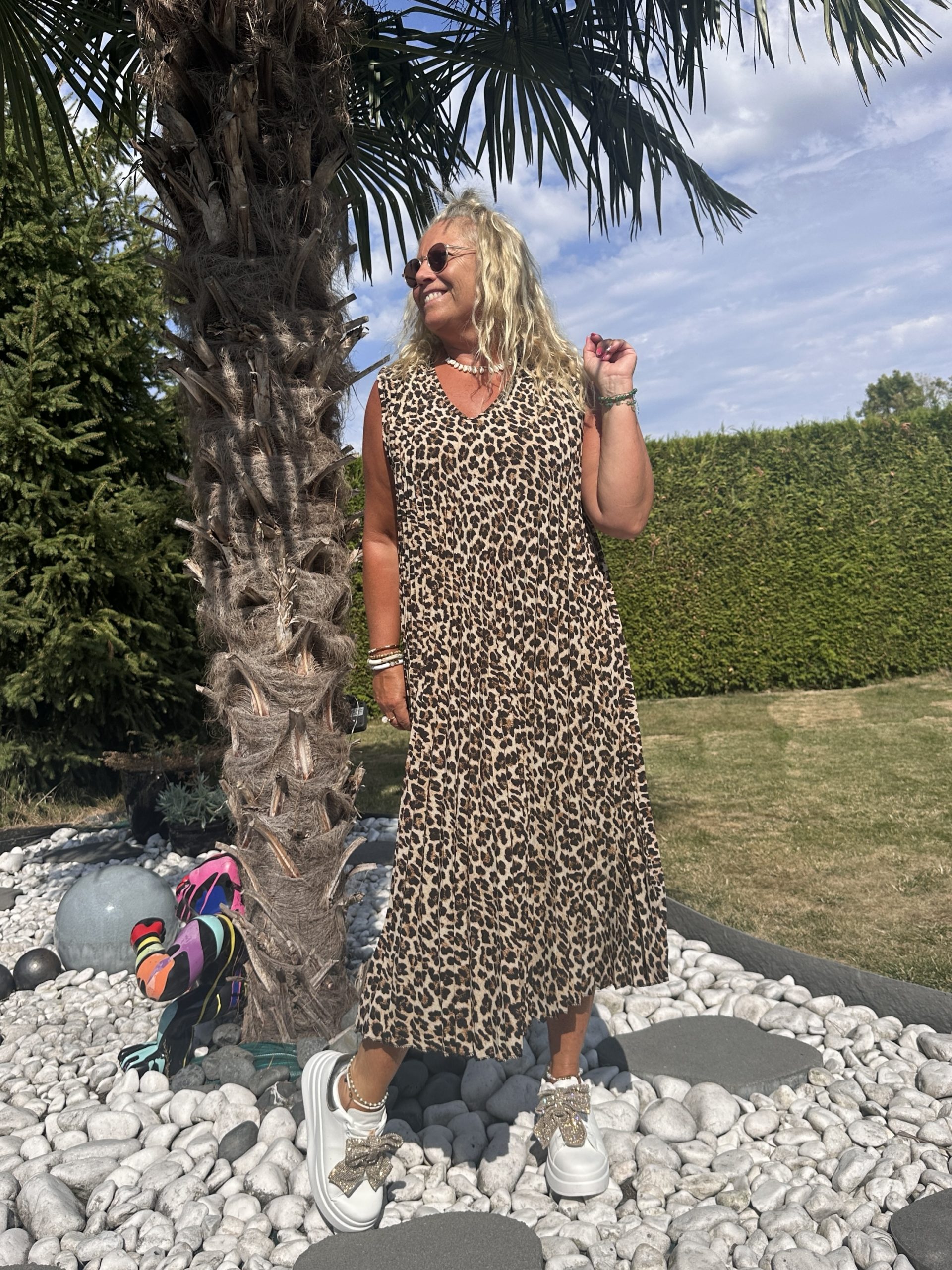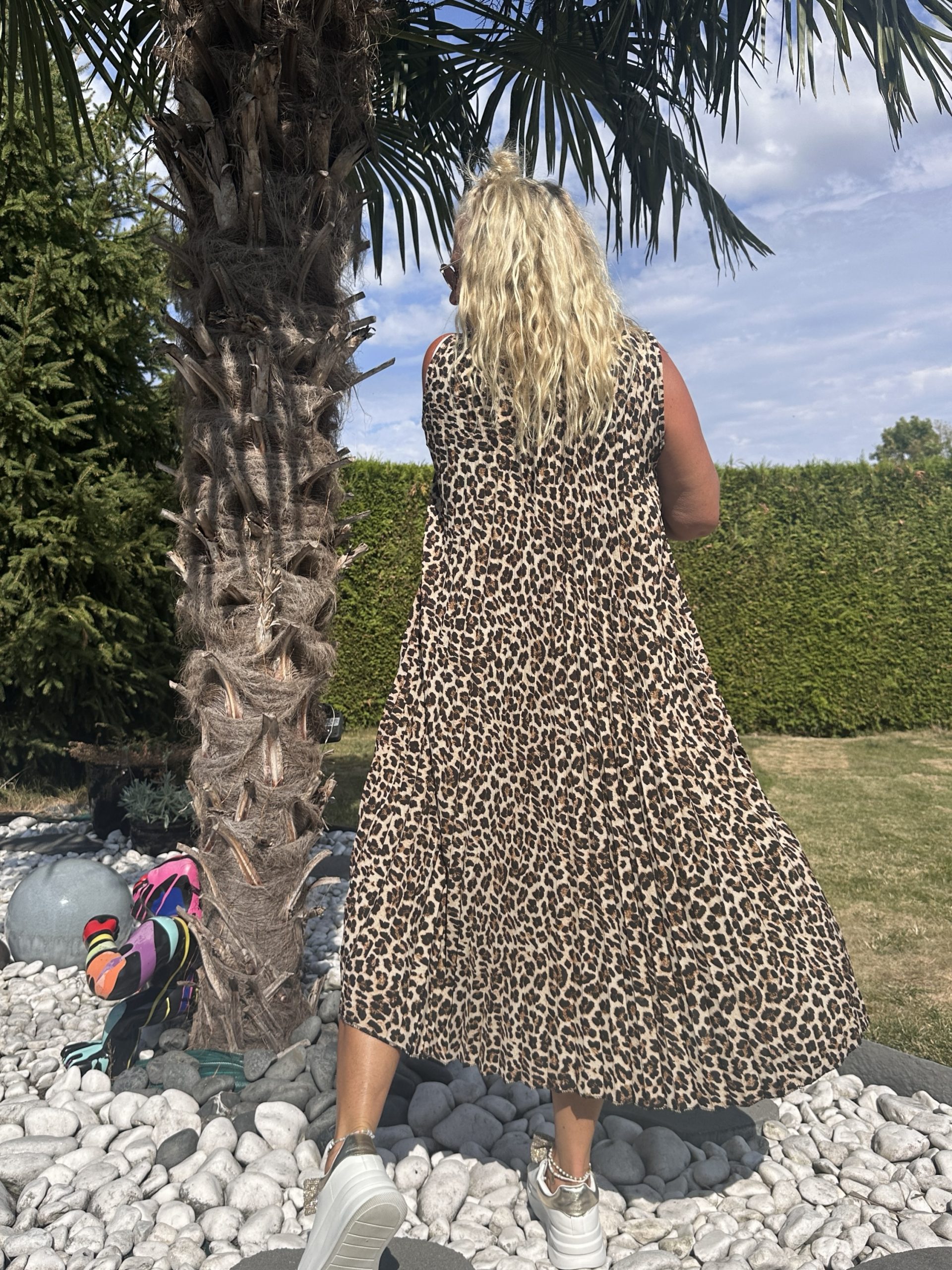 Audacieuse et féminine, cette robe plissée au motif léopard apporte du style sans effort. Sa coupe fluide et sans manches garantit confort et liberté de mouvement, idéale pour toutes les occasions.