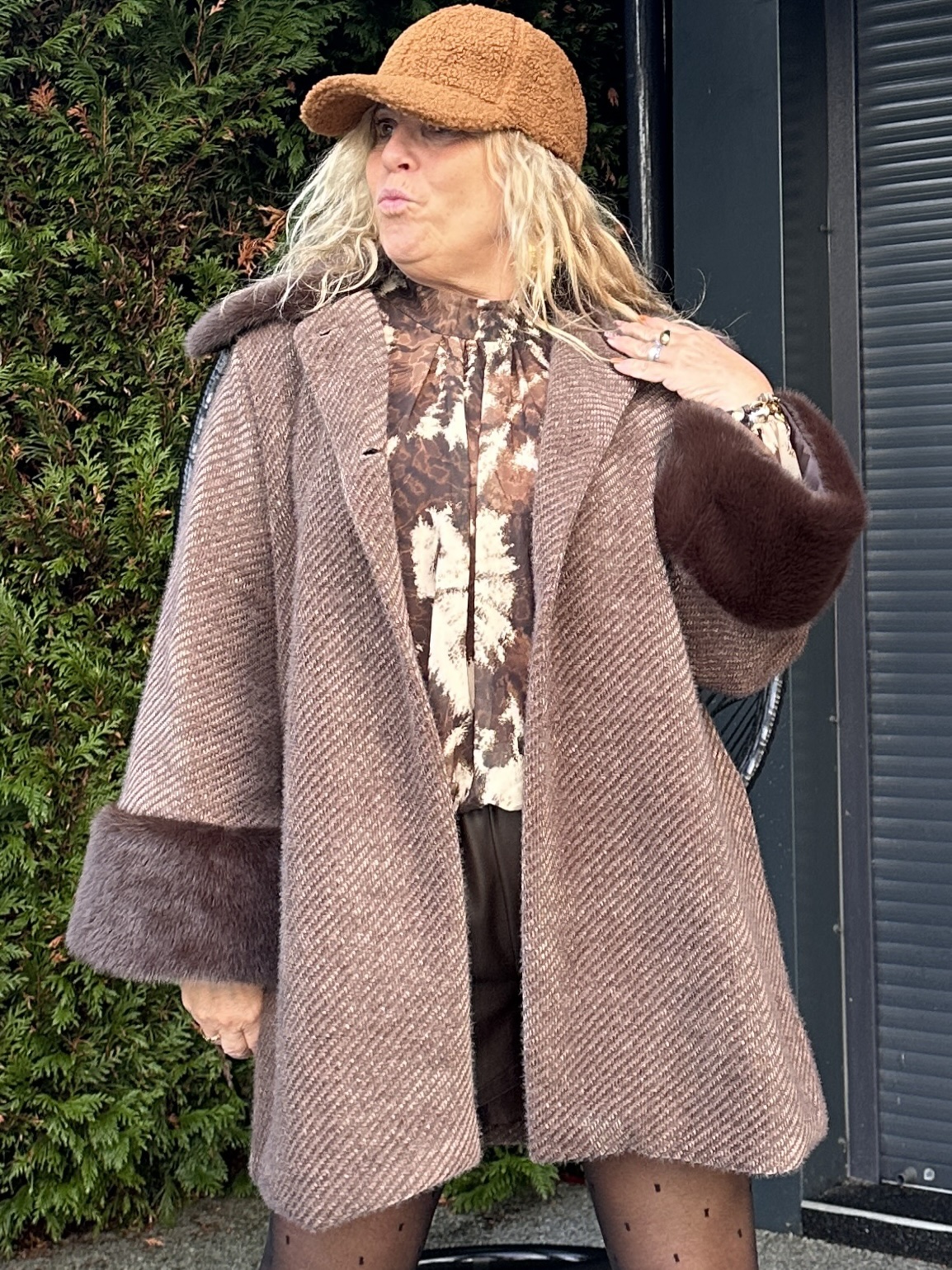 Veste à bordure fausse fourrure – coupe ample